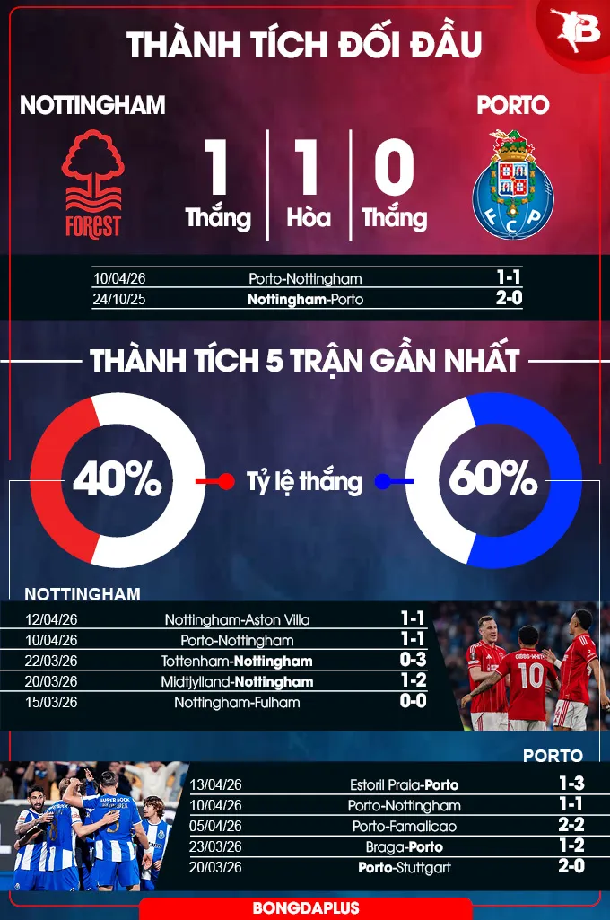 Lịch sử đối đầu cũng phần nào nghiêng về phía Porto khi họ sở hữu thành tích làm khách rất đáng nể: bất bại trong 4 trận gần nhất (3 thắng, 1 hòa). Dù từng nếm trải thất bại ngay trên sân City Ground ở vòng phân hạng, bài học đó chắc chắn sẽ được đội khách rút kinh nghiệm kỹ lưỡng cho trận tứ kết sinh tử này.